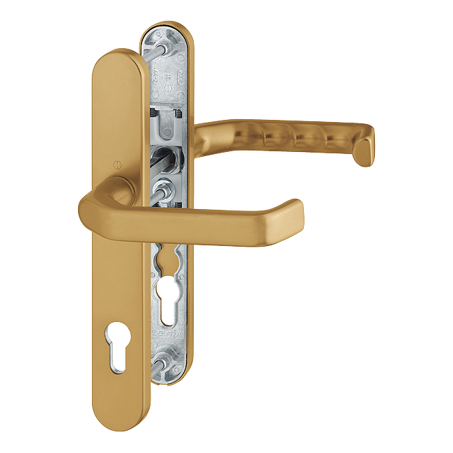 Klamki do drzwi wejściowych to solidne komplety ze wspomaganiem (mechanizm poziomujący położenie klamki), wiodąca seria to Liverpool, występująca również w opcji gałko-klamka i pochwyt-klamka. Kolorystyka klamek okiennych i drzwiowych: biały, brąz, srebrny i złoty.